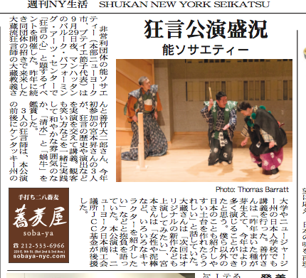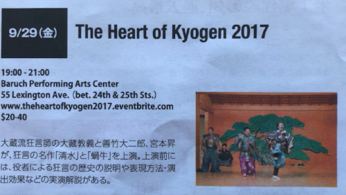 The Fascination with Kyogen by Noriyoshi Ohkura and Daijiro Zenchiku in NewYork